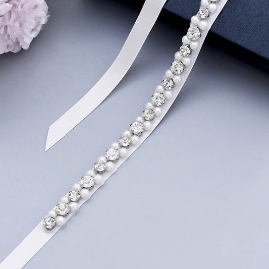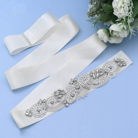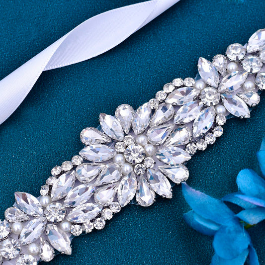 Sophisticated Rhinestones Crystals Pearls Bridal Sash