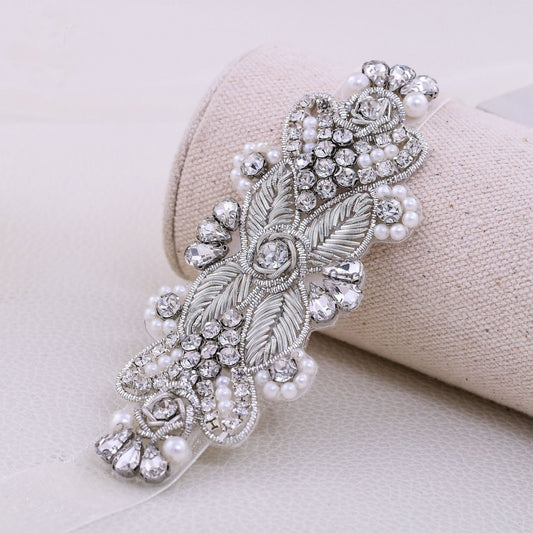 Floral Wire Woven Leaf Pattern Pearls rhinestones Bridal Belt