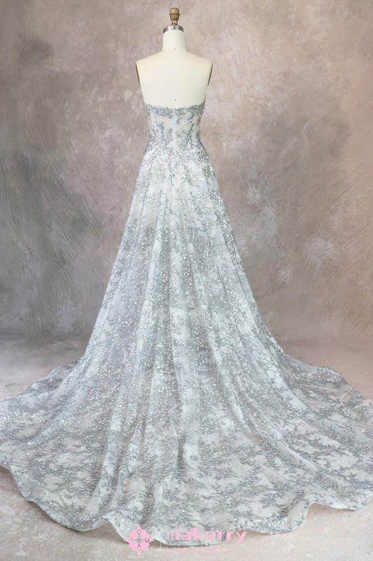 Delicate 3D Lace Hand Beaded Straps Gown With Sleeves
