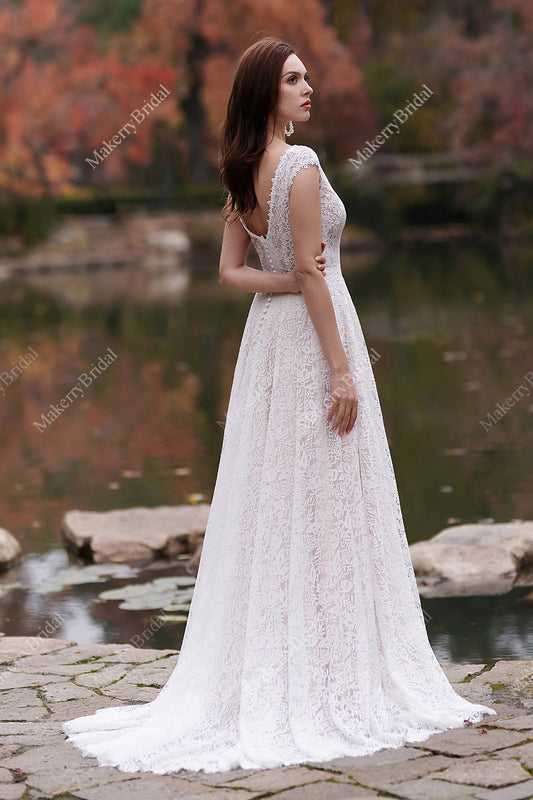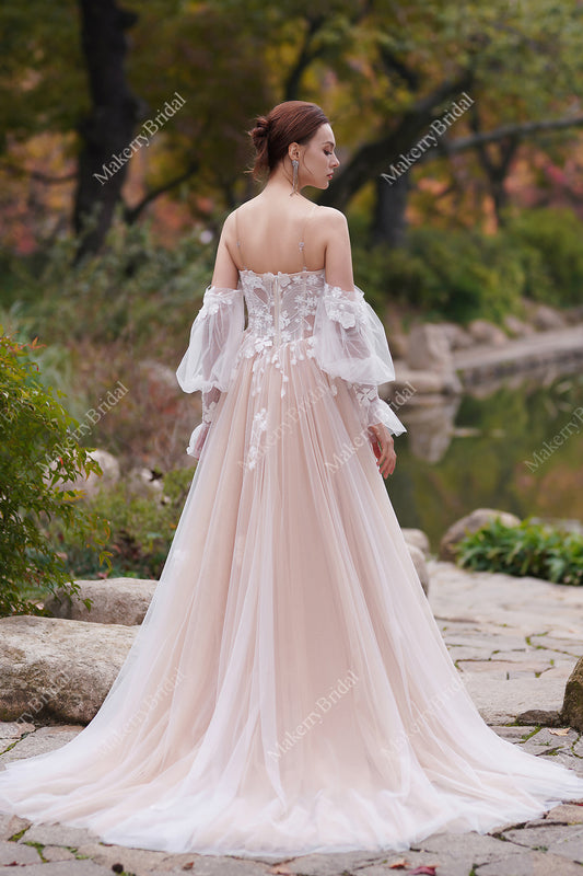 Romantic Pink Nude Beach A-Line Wedding Dress