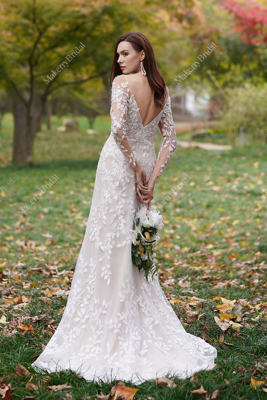 Modest Long Sleeves Lace Mermaid Wedding Dress