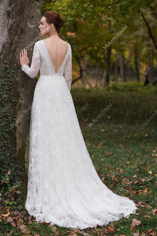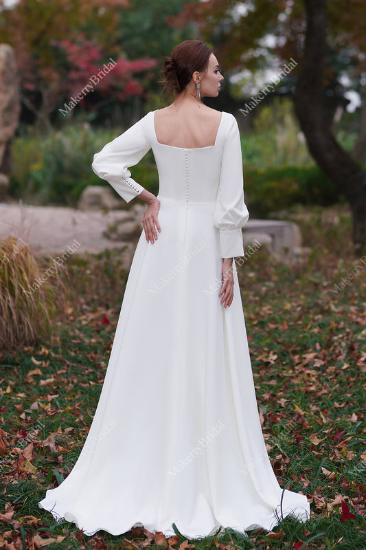 Simple Long Sleeves A-Line Floor Length Bridal Gown