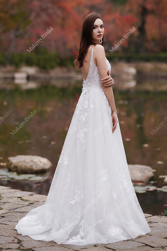 Exquisite A-Line Oversized Floral Motifs Boho Wedding Gown