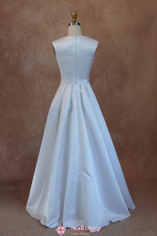 A-line Scoop-Neck Full Back Satin Wedding Dress For Wholesale