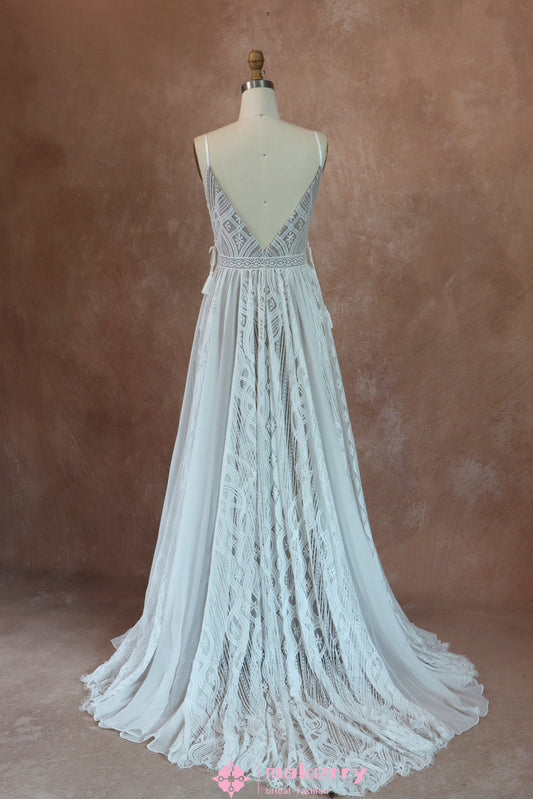 Sexy Lace Bohemian Spaghetti Straps Wedding Dress