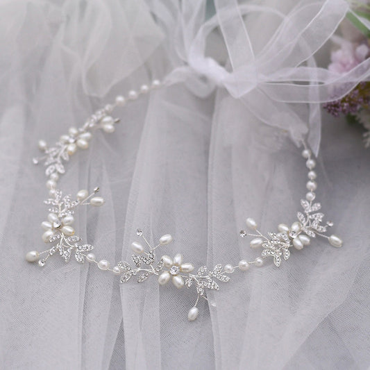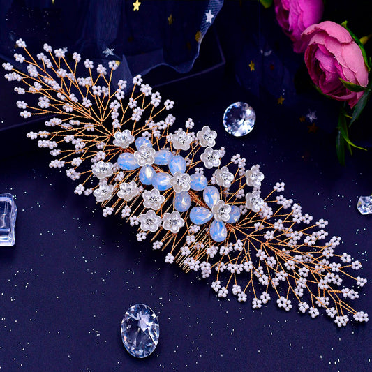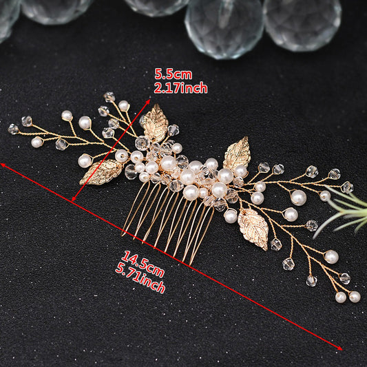 Handmade wedding headpiece hair comb with drop-shaped pearls