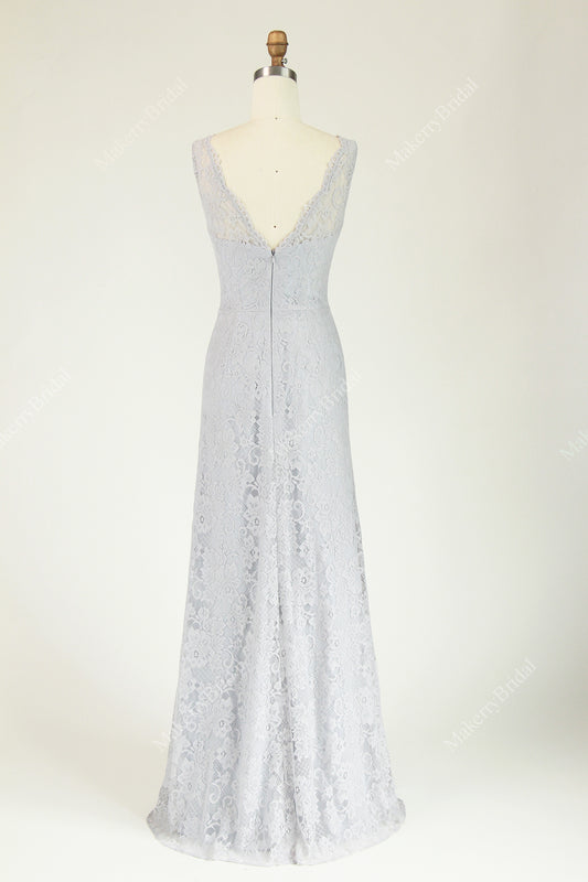 Lace Fit And Flare Bridesmaid Dress With a Flattering V-Neckline And V- Back