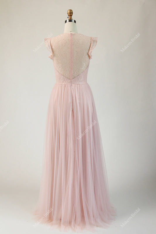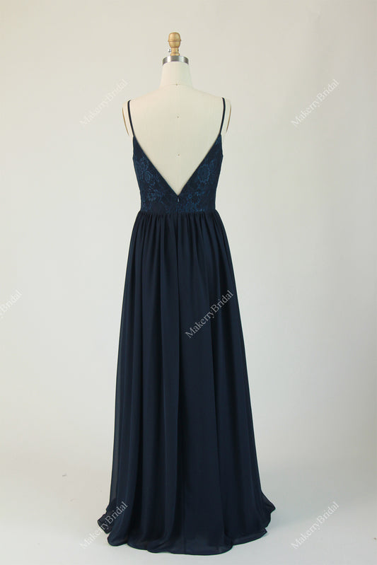 Lace Keyhole Back Chiffon Bridesmaid Dress