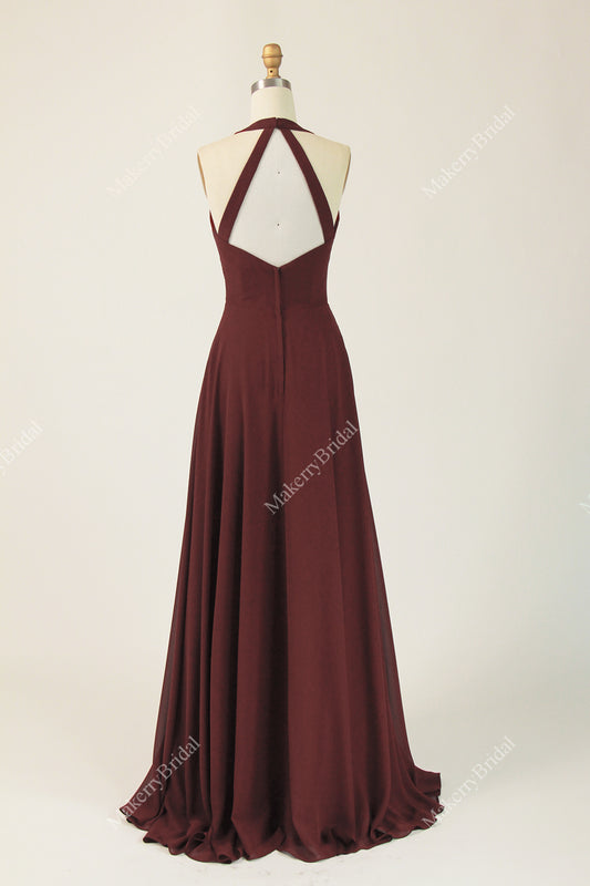 Halter Neck Chiffon Bridesmaid Dress With Pleated Detail Bodice