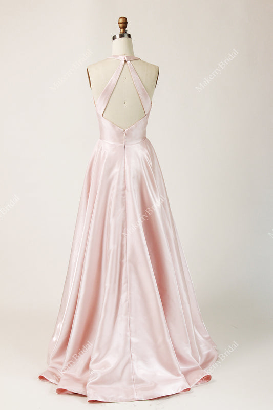 Prom Halter A-line Moonbeam Satin Gown