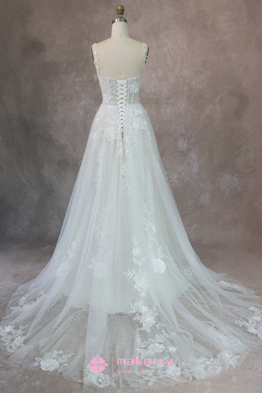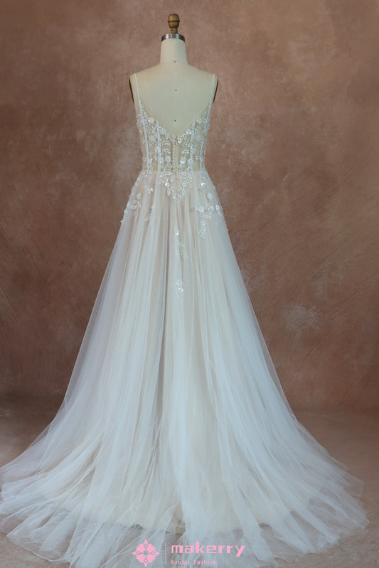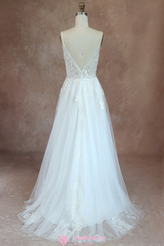Beautiful Ethereal A-Line Wedding Dress with Spaghetti Straps