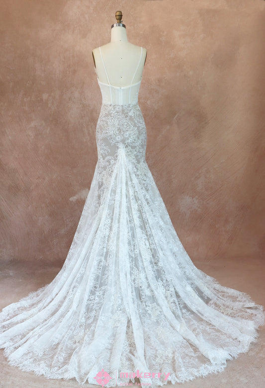 Mermaid Chapel Train Floral Lace Wedding Dress