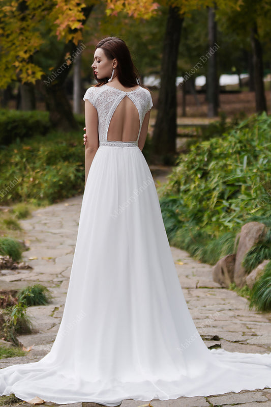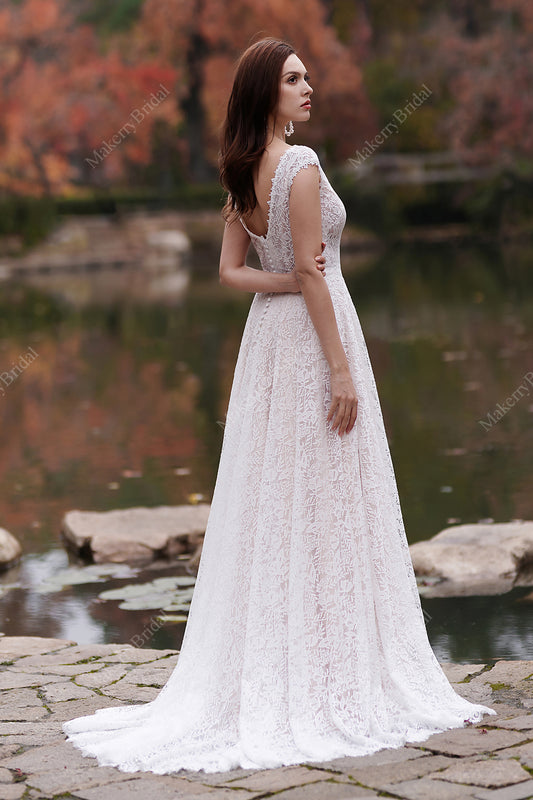 Simple A-Line Wedding Dress With Floral Lace Bodice