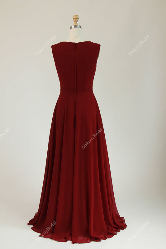 Lace Keyhole Back Chiffon Bridesmaid Dress
