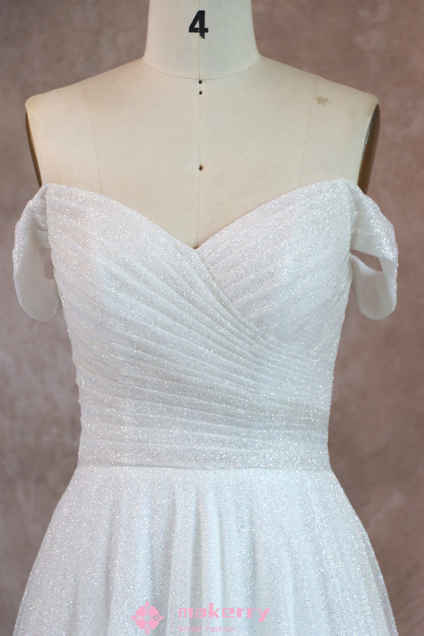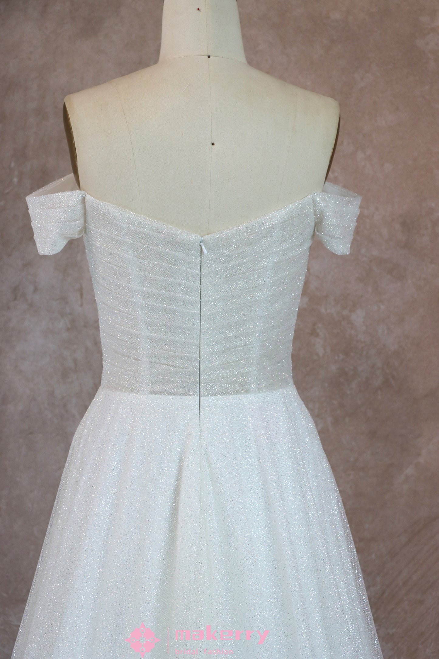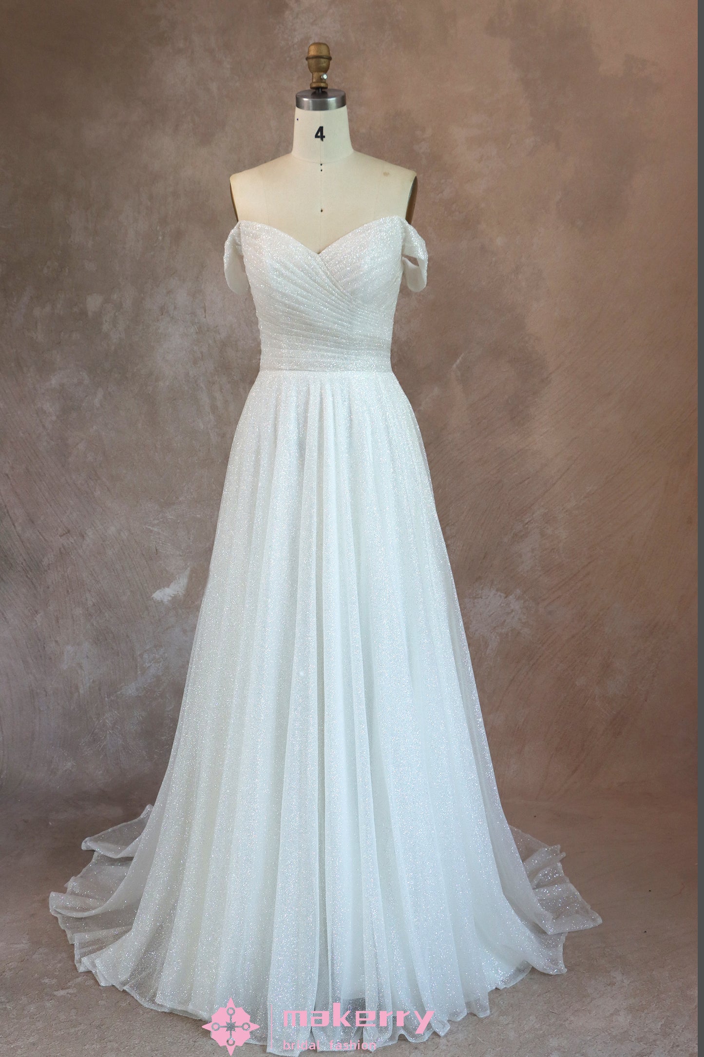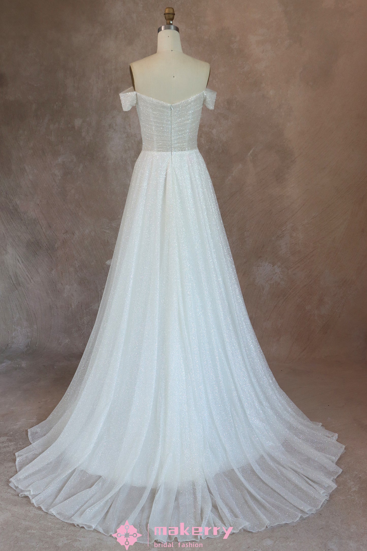 Glitter Tulle Off Shoulder A Line Wedding Gown