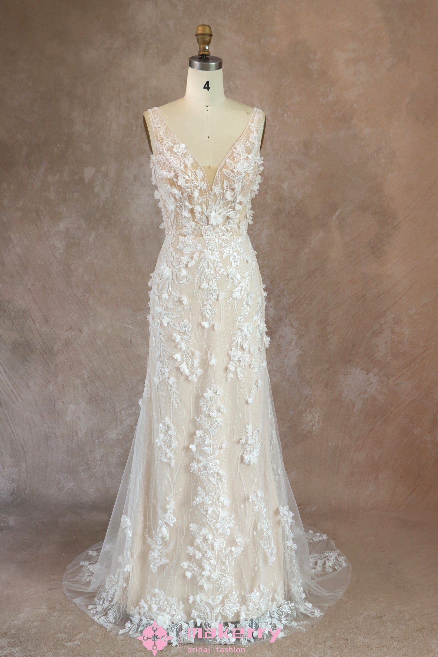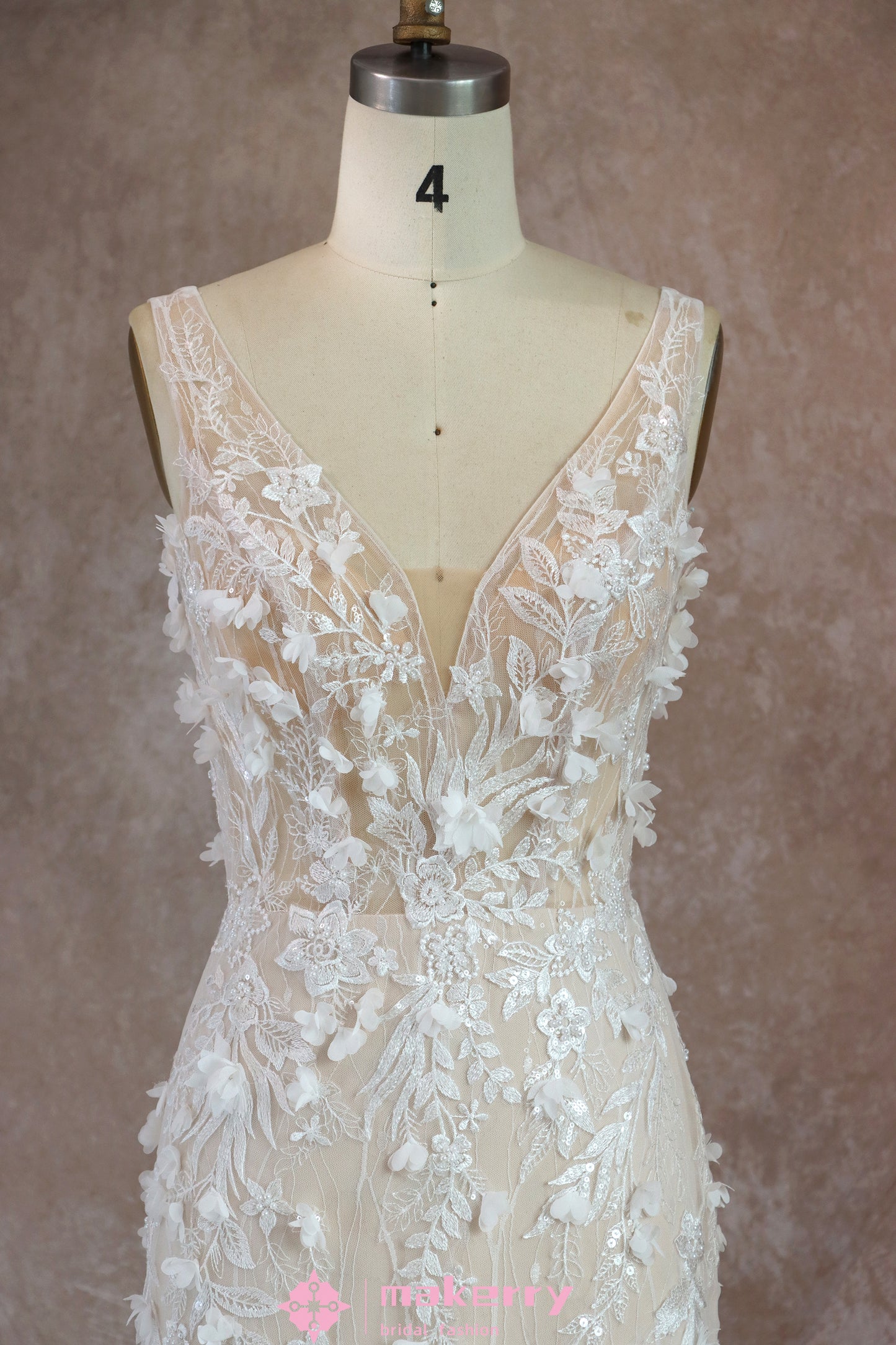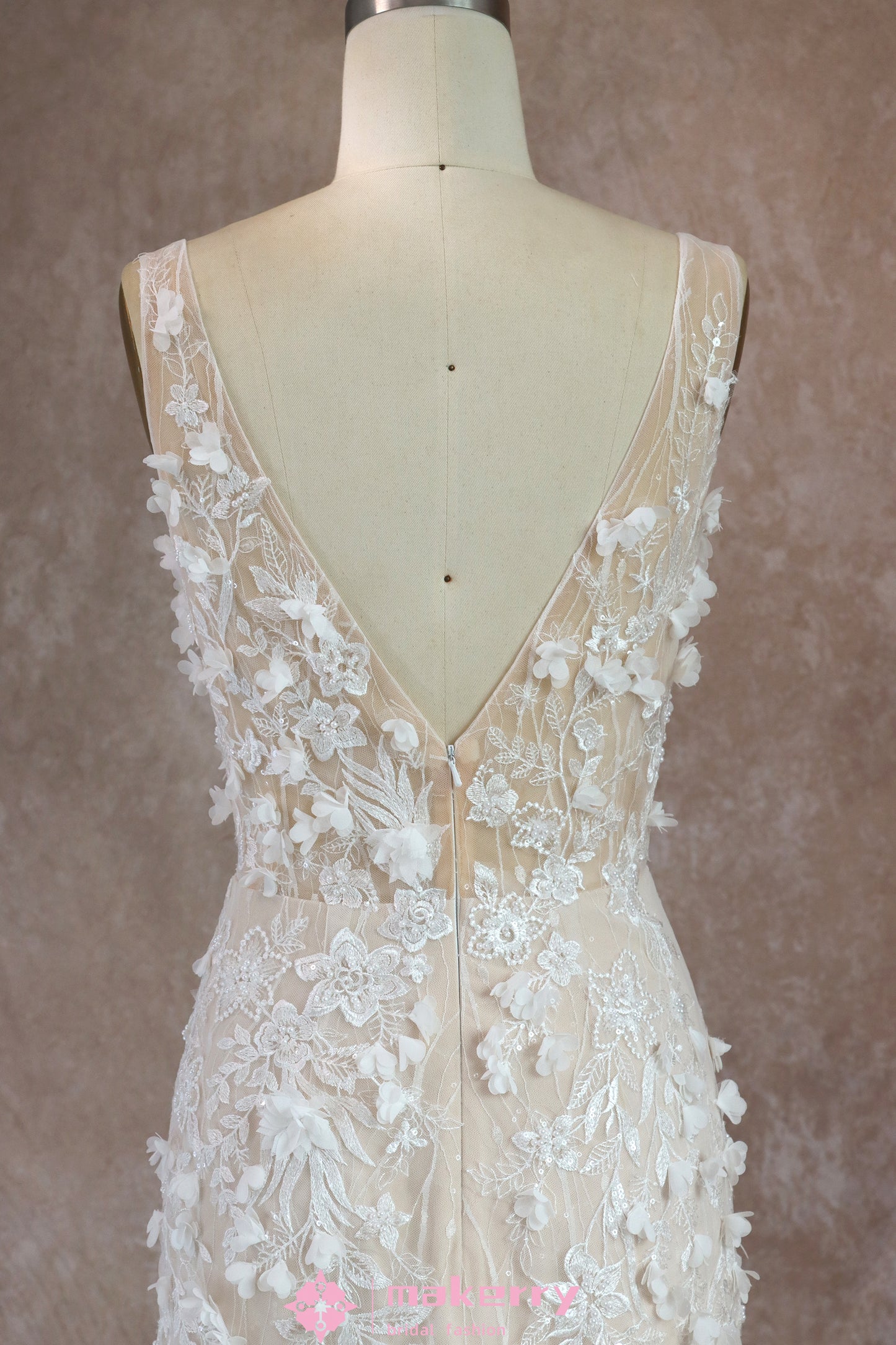 Romantic Sheath 3D Flowers Wedding Dress With The Detachable Skirt