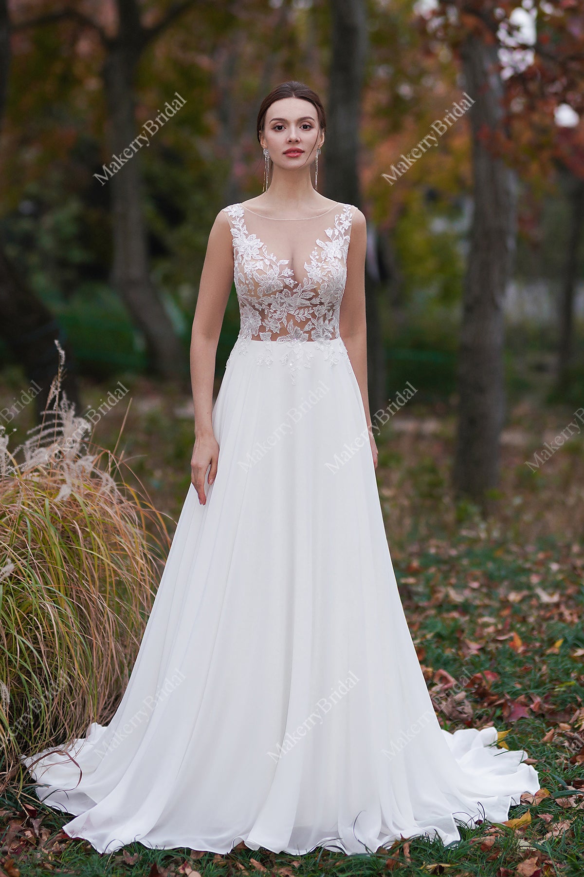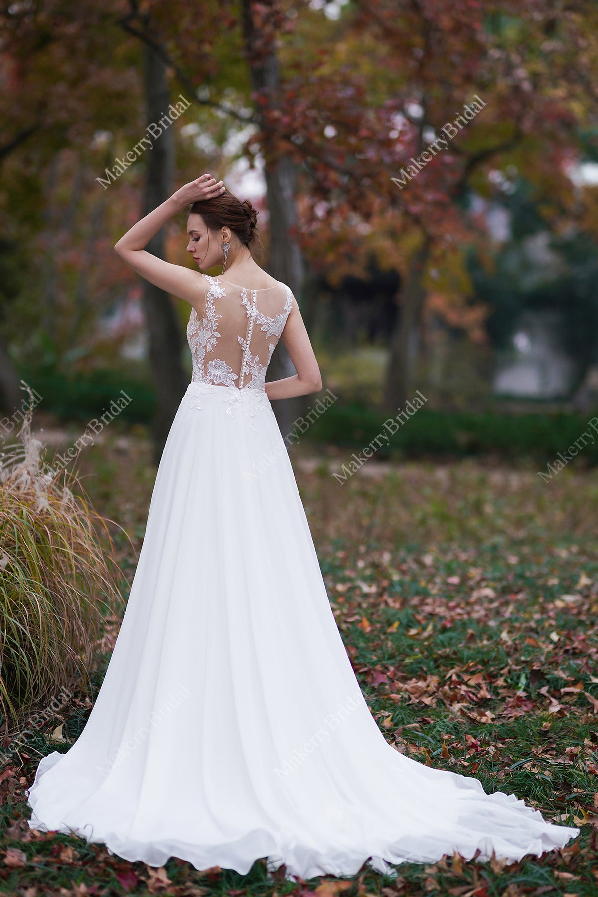 Sheer Lace Appliques Beach Wedding Dress