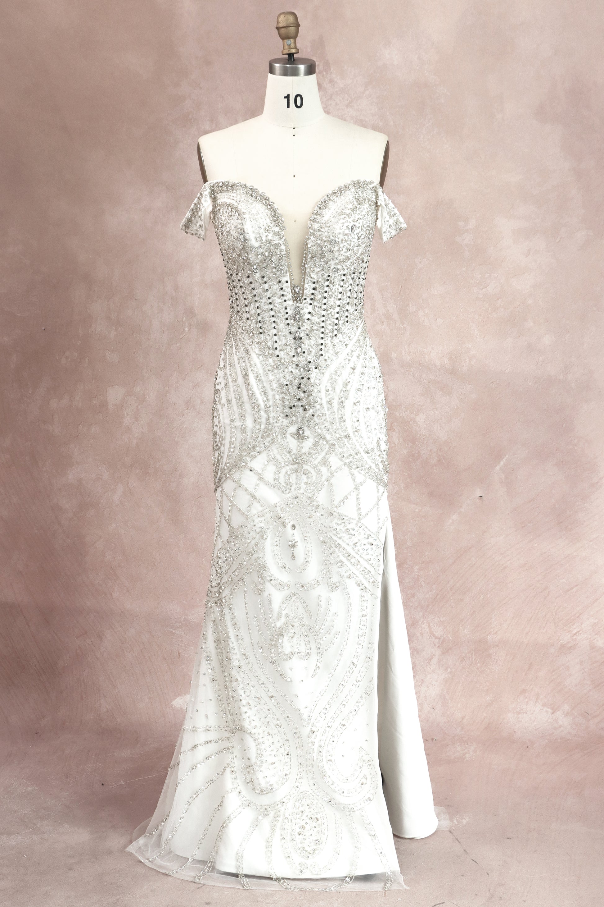 This dress is designed to flatter your figure. The intricate crystal beading adds a touch of glamour, while the ruffle tulle mermaid skirt exudes romance and sophistication. Perfect for the modern bride seeking a timeless and refined look.
