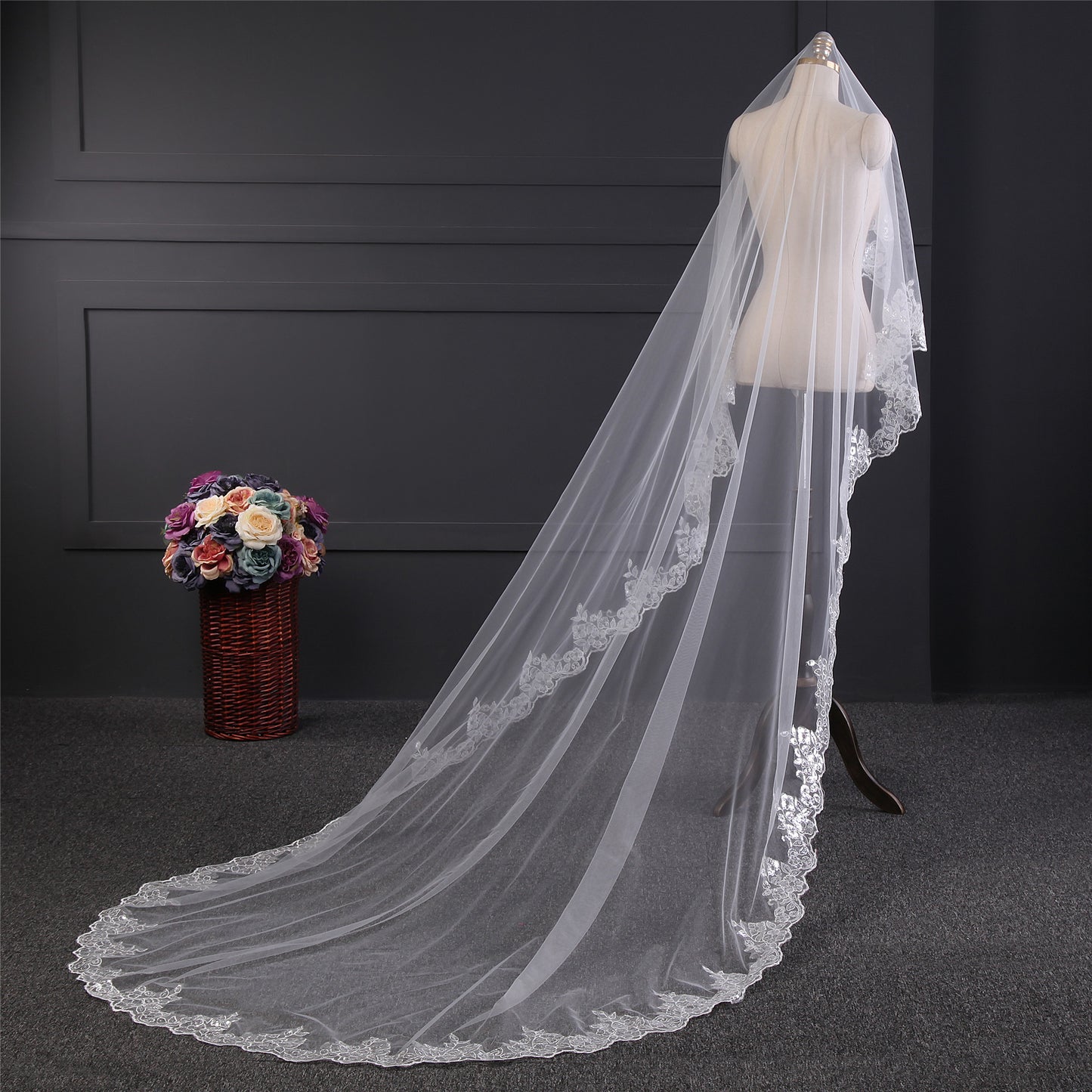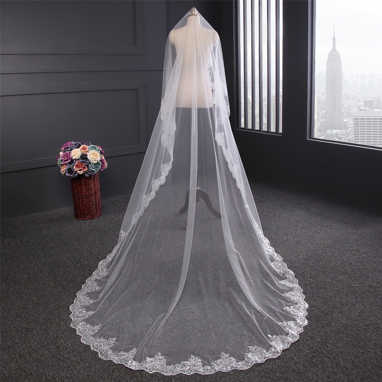 wholesale in stock sequin lace wedding veil
